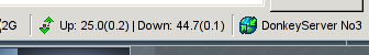 | Description | Just that. The arrows both get green, showing the kad status, but next to it there is no "kad:OK" or anything, just the server name. It seems not to be related to the font I use, since I've tried almost all the legible fonts in my system (with different sizes too) and the behavior is always the same. It does appear, however, sometimes, but it seems to be rendom. Mainly when there is a change in kad status, it will appear briefly, then dissapear again.