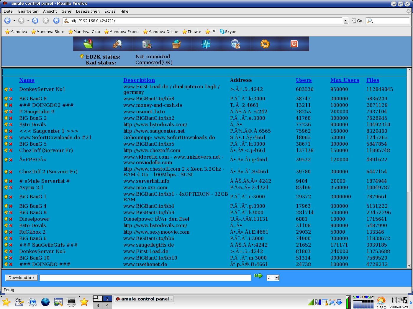 | 0000940 | aMule | External Conn | public | 2006-07-29 12:53 | 2006-08-13 04:18 | ||||
