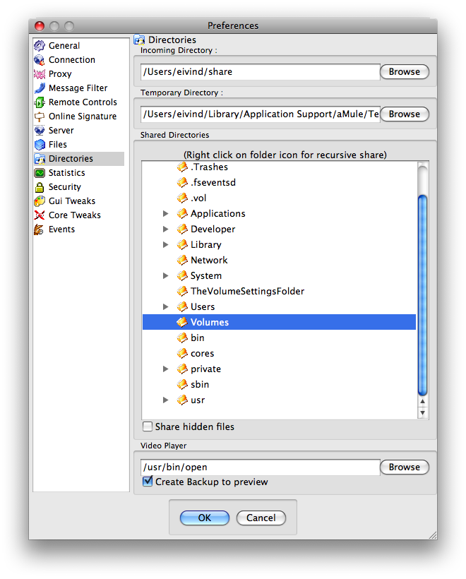 | Description | You can't select external drives to share in the preferences. On Mac OS X, they are in the /Volumes folder, but it is not possible to look in it. | ||||||||||||