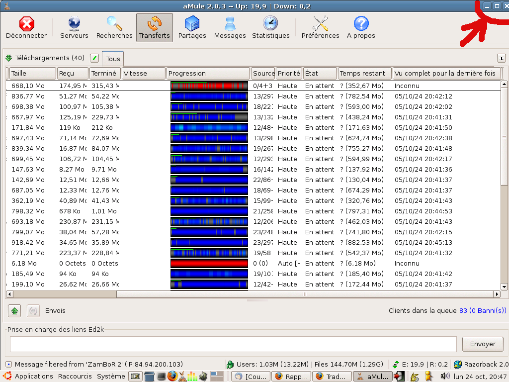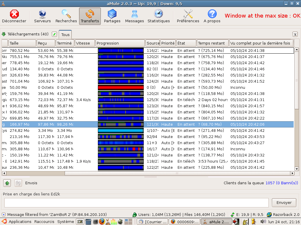 | Description | 1) I set the window at the maximum size 2) I minimize aMule 3) I open the window ---> the window is not set at her maximum size and it goes a little out of the screen. | ||||||||