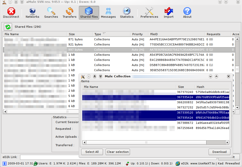 | Description | From SharedFiles list you can right click on a collection, and instead of directly adding all of its contents to the download queue, you can inspect the collection and download the elements you like. | ||||||||||||