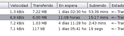 | Description | A few hours after my amule begins to download a file, it has one part completed and is sharing it. Then, my amule begins to send the file to another user. The info line for the user shows that the user is in cue more time (14 or 15 hours) than my amule is downloading it (i added it to amule in order to download it only 4 or 5 hours ago). | ||||||||