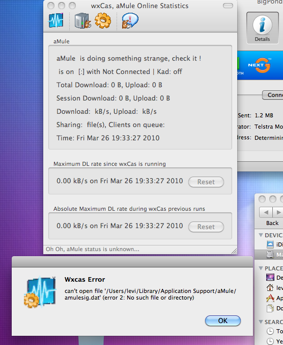 | Description | When opening program this just crashes, have uninstalled and re installed but still same thing. Not sure why have not done anything different, use to work fine then all of a sudden it crashed while downloading something then will not re open. Process: amule [9385] Path: /Applications/aMule-2.2.5/aMule.app/Contents/MacOS/amule Identifier: org.amule.aMule Version: 2.2.5 (2.2.5) Code Type: X86 (Native) Parent Process: launchd [103] Date/Time: 2010-03-26 19:28:25.495 +1100 OS Version: Mac OS X 10.6.2 (10C540) Report Version: 6 Interval Since Last Report: 413689 sec Crashes Since Last Report: 3 Per-App Interval Since Last Report: 3 sec Per-App Crashes Since Last Report: 1 Anonymous UUID: 6D15B09B-430B-40A3-8BC7-520D84A06F7E Exception Type: EXC_BAD_ACCESS (SIGABRT) Exception Codes: KERN_PROTECTION_FAILURE at 0x0000000000000000 Crashed Thread: 0 Dispatch queue: com.apple.main-thread Application Specific Information: abort() called Thread 0 Crashed: Dispatch queue: com.apple.main-thread 0 libSystem.B.dylib 0x92f90732 __kill + 10 1 libSystem.B.dylib 0x92f90724 kill$UNIX2003 + 32 2 libSystem.B.dylib 0x9302398d raise + 26 3 libSystem.B.dylib 0x93039a44 abort + 93 4 org.amule.aMule 0x00534456 wxFatalSignalHandler + 38 5 libSystem.B.dylib 0x92f959bb _sigtramp + 43 6 ??? 0x0000000a 0 + 10 Thread 1: Dispatch queue: com.apple.libdispatch-manager 0 libSystem.B.dylib 0x92f560ea kevent + 10 1 libSystem.B.dylib 0x92f56804 _dispatch_mgr_invoke + 215 2 libSystem.B.dylib 0x92f55cc3 _dispatch_queue_invoke + 163 3 libSystem.B.dylib 0x92f55a68 _dispatch_worker_thread2 + 234 4 libSystem.B.dylib 0x92f554f1 _pthread_wqthread + 390 5 libSystem.B.dylib 0x92f55336 start_wqthread + 30 Thread 2: 0 libSystem.B.dylib 0x92f55182 __workq_kernreturn + 10 1 libSystem.B.dylib 0x92f55718 _pthread_wqthread + 941 2 libSystem.B.dylib 0x92f55336 start_wqthread + 30 Thread 3: 0 libSystem.B.dylib 0x92f4e856 select$DARWIN_EXTSN + 10 1 com.apple.CoreFoundation 0x94406ddd __CFSocketManager + 1085 2 libSystem.B.dylib 0x92f5cfbd _pthread_start + 345 3 libSystem.B.dylib 0x92f5ce42 thread_start + 34 Thread 4: 0 libSystem.B.dylib 0x92f4785e notify_check + 21 1 libSystem.B.dylib 0x92f46416 notify_check_tz + 85 2 libSystem.B.dylib 0x92f46350 tzsetwall_basic + 24 3 libSystem.B.dylib 0x92f46184 localtime_r + 55 4 org.amule.aMule 0x004ae138 wxDateTime::GetTm(wxDateTime::TimeZone const&) const + 920 5 org.amule.aMule 0x0049dafa wxSocketBase::_Wait(long, long, int) + 522 6 org.amule.aMule 0x0049dd2f wxSocketClient::WaitOnConnect(long, long) + 63 7 org.amule.aMule 0x0049a7e0 wxHTTP::GetInputStream(wxString const&) + 96 8 org.amule.aMule 0x00084167 CHTTPDownloadThread::GetInputStream(wxHTTP**, wxString const&, bool) + 1287 9 org.amule.aMule 0x00084e0f CHTTPDownloadThread::Entry() + 271 10 org.amule.aMule 0x0052996d wxThreadInternal::MacThreadStart(void*) + 173 11 ...ple.CoreServices.CarbonCore 0x923c57ae PrivateMPEntryPoint + 68 12 libSystem.B.dylib 0x92f5cfbd _pthread_start + 345 13 libSystem.B.dylib 0x92f5ce42 thread_start + 34 Thread 5: 0 libSystem.B.dylib 0x92f2f9ee mach_wait_until + 10 1 ...ple.CoreServices.CarbonCore 0x92469034 MPDelayUntil + 43 2 org.amule.aMule 0x0052872f wxThread::Sleep(unsigned long) + 47 3 org.amule.aMule 0x000b957a UploadBandwidthThrottler::Entry() + 3930 4 org.amule.aMule 0x0052996d wxThreadInternal::MacThreadStart(void*) + 173 5 ...ple.CoreServices.CarbonCore 0x923c57ae PrivateMPEntryPoint + 68 6 libSystem.B.dylib 0x92f5cfbd _pthread_start + 345 7 libSystem.B.dylib 0x92f5ce42 thread_start + 34 Thread 6: 0 libSystem.B.dylib 0x92f2f92e semaphore_timedwait_trap + 10 1 ...ple.CoreServices.CarbonCore 0x923f7f9e MPWaitOnSemaphore + 125 2 org.amule.aMule 0x0052834b wxSemaphoreInternal::WaitTimeout(unsigned long) + 27 3 org.amule.aMule 0x001d9770 CTimerThread::Entry() + 160 4 org.amule.aMule 0x0052996d wxThreadInternal::MacThreadStart(void*) + 173 5 ...ple.CoreServices.CarbonCore 0x923c57ae PrivateMPEntryPoint + 68 6 libSystem.B.dylib 0x92f5cfbd _pthread_start + 345 7 libSystem.B.dylib 0x92f5ce42 thread_start + 34 Thread 0 crashed with X86 Thread State (32-bit): eax: 0x00000000 ebx: 0x930399f3 ecx: 0xbfffe44c edx: 0x92f90732 edi: 0x00000000 esi: 0xbfffe7c0 ebp: 0xbfffe468 esp: 0xbfffe44c ss: 0x0000001f efl: 0x00000286 eip: 0x92f90732 cs: 0x00000007 ds: 0x0000001f es: 0x0000001f fs: 0x00000000 gs: 0x00000037 cr2: 0x00416000 Binary Images: 0x1000 - 0x7adff3 +org.amule.aMule 2.2.5 (2.2.5) <CF381BC7-E872-02D7-7F1D-FDB1D5CC37D8> /Applications/aMule-2.2.5/aMule.app/Contents/MacOS/amule 0xdb6000 - 0xdc6ffd +libz.1.dylib ??? (???) <7BEC6B4F-6747-8A83-0776-DD13BAF3BAC5> /Applications/aMule-2.2.5/aMule.app/Contents/Frameworks/libz.1.dylib 0xdcb000 - 0xde2ffc +libupnp.3.dylib ??? (???) <BC539FA6-E343-31B5-8E52-484B08B4D209> /Applications/aMule-2.2.5/aMule.app/Contents/Frameworks/libupnp.3.dylib 0xdeb000 - 0xdedfff +libthreadutil.2.dylib ??? (???) <1AD79080-3B0A-8190-950C-6C3B275158E2> /Applications/aMule-2.2.5/aMule.app/Contents/Frameworks/libthreadutil.2.dylib 0xdf1000 - 0xdf6ffc +libixml.2.dylib ??? (???) <D0A5BE28-ECC8-A7DA-7685-5F0750DFD037> /Applications/aMule-2.2.5/aMule.app/Contents/Frameworks/libixml.2.dylib 0xdfb000 - 0xef2ff0 +libiconv.2.dylib ??? (???) <3E70B217-B91C-DEAE-4B1A-604B61FDDA46> /Applications/aMule-2.2.5/aMule.app/Contents/Frameworks/libiconv.2.dylib 0xeff000 - 0xf2efef +libGeoIP.1.dylib ??? (???) <26EAAE10-C2C4-92B9-ED9D-5F31E7863777> /Applications/aMule-2.2.5/aMule.app/Contents/Frameworks/libGeoIP.1.dylib 0xf89000 - 0xf8aff7 com.apple.textencoding.unicode 2.3 (2.3) <78A61FD5-70EE-19EA-48D4-3481C640B70D> /System/Library/TextEncodings/Unicode Encodings.bundle/Contents/MacOS/Unicode Encodings 0x1736000 - 0x1736ff7 libmx.A.dylib ??? (???) <01401BF8-3FC7-19CF-ACCE-0F292BFD2F25> /usr/lib/libmx.A.dylib 0x1739000 - 0x173effb com.apple.AppleMPEG2Codec 1.0.1 (220) /Library/QuickTime/AppleMPEG2Codec.component/Contents/MacOS/AppleMPEG2Codec 0x176c000 - 0x17c1fdf +com.DivXInc.DivXDecoder 6.8.3.5 (6.8.3.5) /Libra