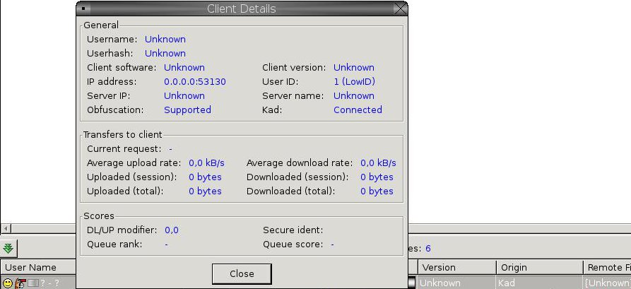 | Description | Seen in my logfile, today, using rev 10650, and Kad only (ED2K disabled) "User mr (1) requested your shareddirectories-list" AFAICT, 1 (1.0.0.0) is obviously not a p2p user. And of course I'm not using 1.0.0.0/8 myself in any way. Let's hope it's just a "display" problem only related to file listing... | ||||||||||||