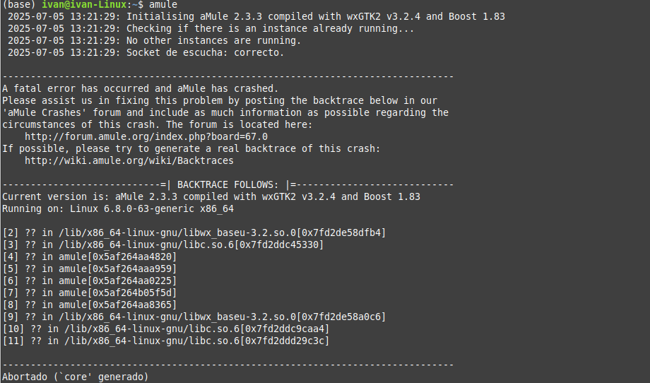 Summary0001823: aMule 2.3.3 crashes on Linux Mint 22 (Ubuntu 22.04 base) with wxGTK 3.2