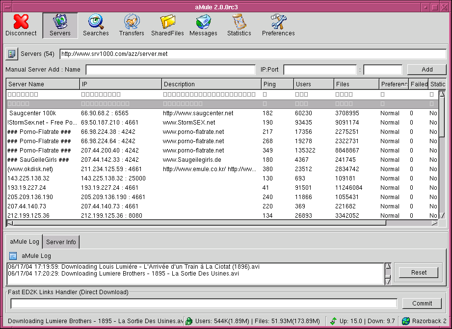 | Description | One or two servers are not displayed properly. Meaning the text is only shown as squares. Usually it is just the server to which amule is currently connected. The screen shot now shows two servers. Same thing happens in the configure window with one the shared directories. This has _not_ been there from the beginning, but now after a reboot its there all the time. | ||||||||