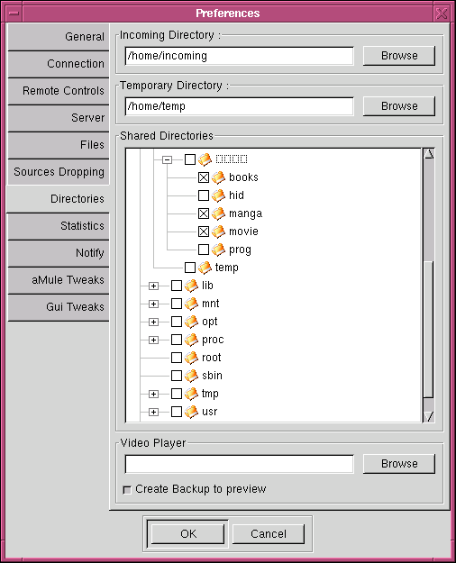 Just checked and found 100dpi, misc and scaleable. Well and cyrillic. For the heck of it I just reinstalled them all and restarted the whole box. Problem unchanged. Nope, now console errors whatsoever. Now with aMule-cvs-20040623.tar.bz2 I should say again, this is a "headless" box. After boot, I telnet and start X within vncserver. amule runs in that. Though all that should not really matter I'd think. After all, what is the difference between one entry and another in the server or shared files list? Hm, just played around a bit. As soon as I connect to a server, the boxes appear. The server info scrolls in and the font changes to boxes. tried 2/3 servers. |